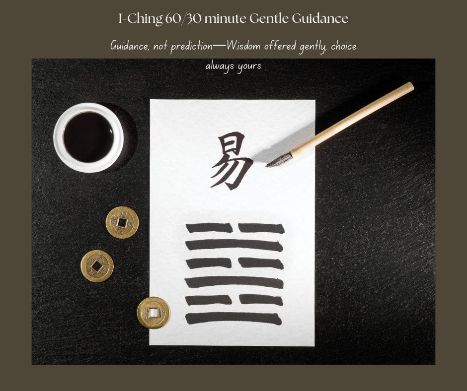 I-Ching guidance reading offers insight into the energetic themes surrounding your current situation and the path unfolding ahead. Through intuitive interpretation of the I-Ching, I help you gain clarity around what is influencing your experience, what is being asked of you right now, and how you can move forward with greater awareness and confidence.